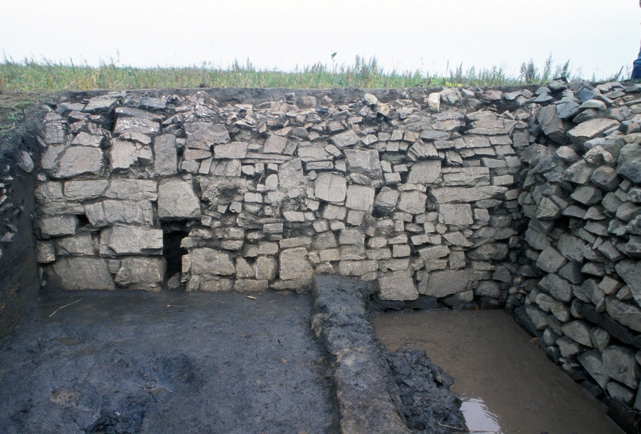 ロシア隊と韓国隊は城内北部の寺院区画周辺での発掘調査を進め、井戸跡や瓦窯・鍛冶炉跡など寺院造営に必要な施設跡を検出しています。クラスキノ城跡では、周囲に延長約1300mで高さ約3mの石積み城壁が構築されています。渤海の平地城を囲む城壁は土築が一般的で、石積み城壁が確認されているのは王都の上京城とクラスキノ城跡だけです。このことは、日本と往来する渤海使や日本の遣渤海使が滞在したクラスキノ城跡(東京竜原府の塩州城)を、渤海の王権が重要な外交施設としていたことを如実に示しています。