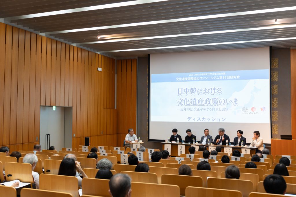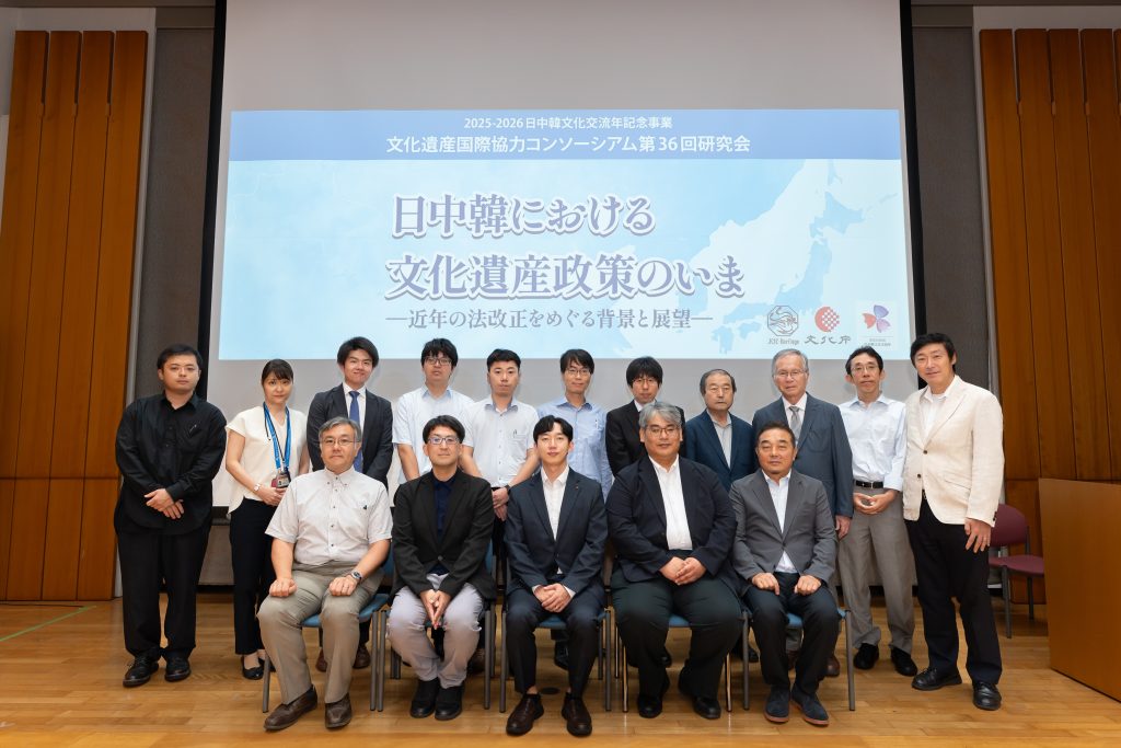 文化遺産国際協力コンソーシアムでは、文化庁との共催、外務省の後援のもと、2025(令和7)年9月14日(日)に第36回研究会「日中韓における文化遺産政策のいま―近年の法改正をめぐる背景と展望―」を、東京文化財研究所地階セミナー室にて開催しました。本研究会は、日中韓3か国の交流促進、相互理解の深化、協力関係の強化に資するものとして、3か国の政府が公認する「2025–2026日中韓文化交流年記念事業」の一環にも位置づけられています。
